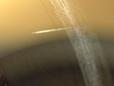 Merevlemezbe került fémforgácsés hibás szerelés okozta sérülés.